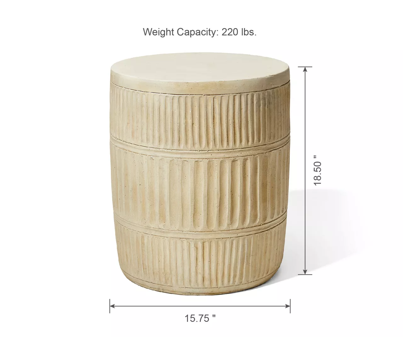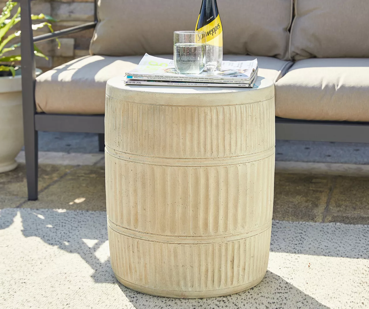 Enhance the look of your outdoor space with this stunning drum garden table. With a unique imitation terracotta design in a white finish and a delicate grooved texture, this table is very versatile and can be used as a planter stand or as an accent table. Use it to showcase greenery in the garden or keep at your chairside on the patio.