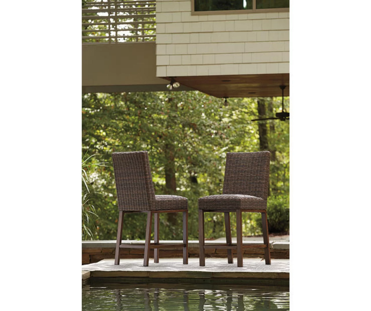 - Includes 2 outdoor bar stools