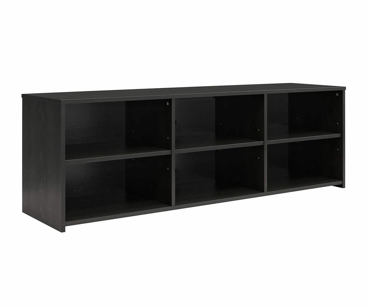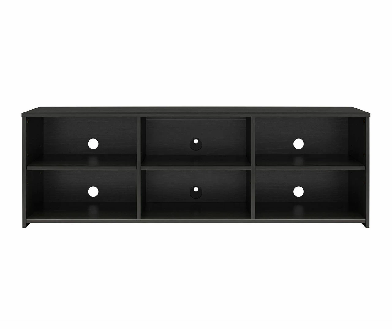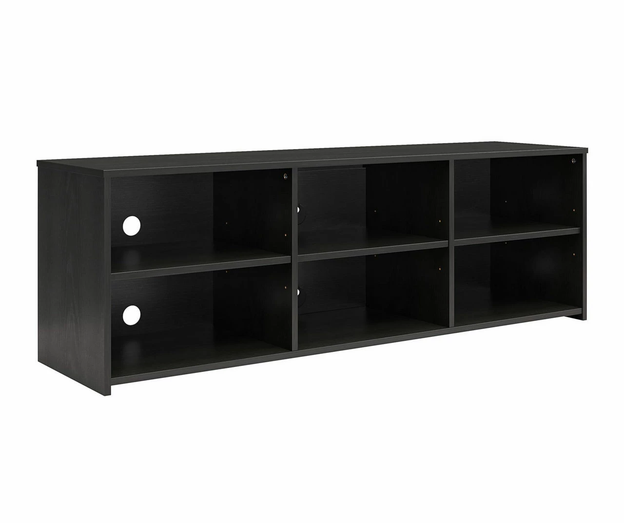 Add a simple, streamlined look to your living room with the Capstan TV stand. Constructed from engineered wood, this modern TV console features six open compartments for AV equipment and gaming systems. For taller components, simply adjust the height of any of the three middle shelves to suit your unique storage needs. Wire pass-throughs in the back of the unit keep cords out of sight and tangle-free.