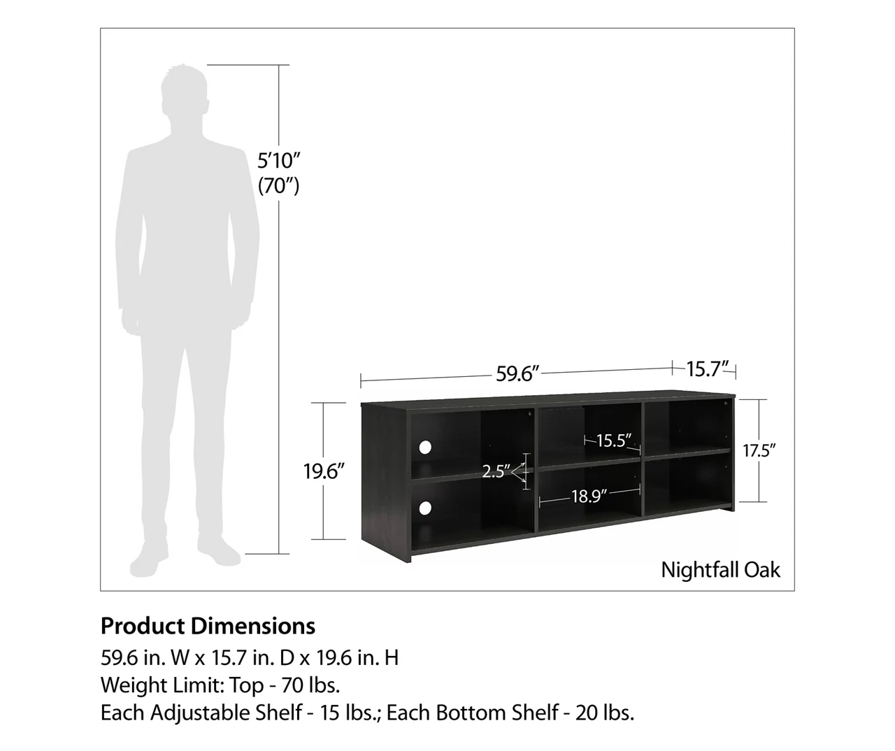 - Bottom weight limit: 20 lbs. (each)