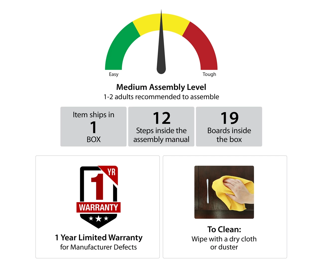- Detailed molding and stair-step effect design is finished in a sleek black look