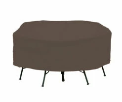 Keep your patio set covered and safe from outdoor weather conditions using this round cover. Designed in a stylish mocha color that will look great with your décor, it’s manufactured with heavy-duty, long lasting woven polyester that shields your furniture from dirt, dust, pollen, sap, snow and rain all year long. Water-resistant and UV protected to help prevent fading, discoloration and resist extreme temperatures, the cover is complete with a zipper that makes it easy to secure and remove.