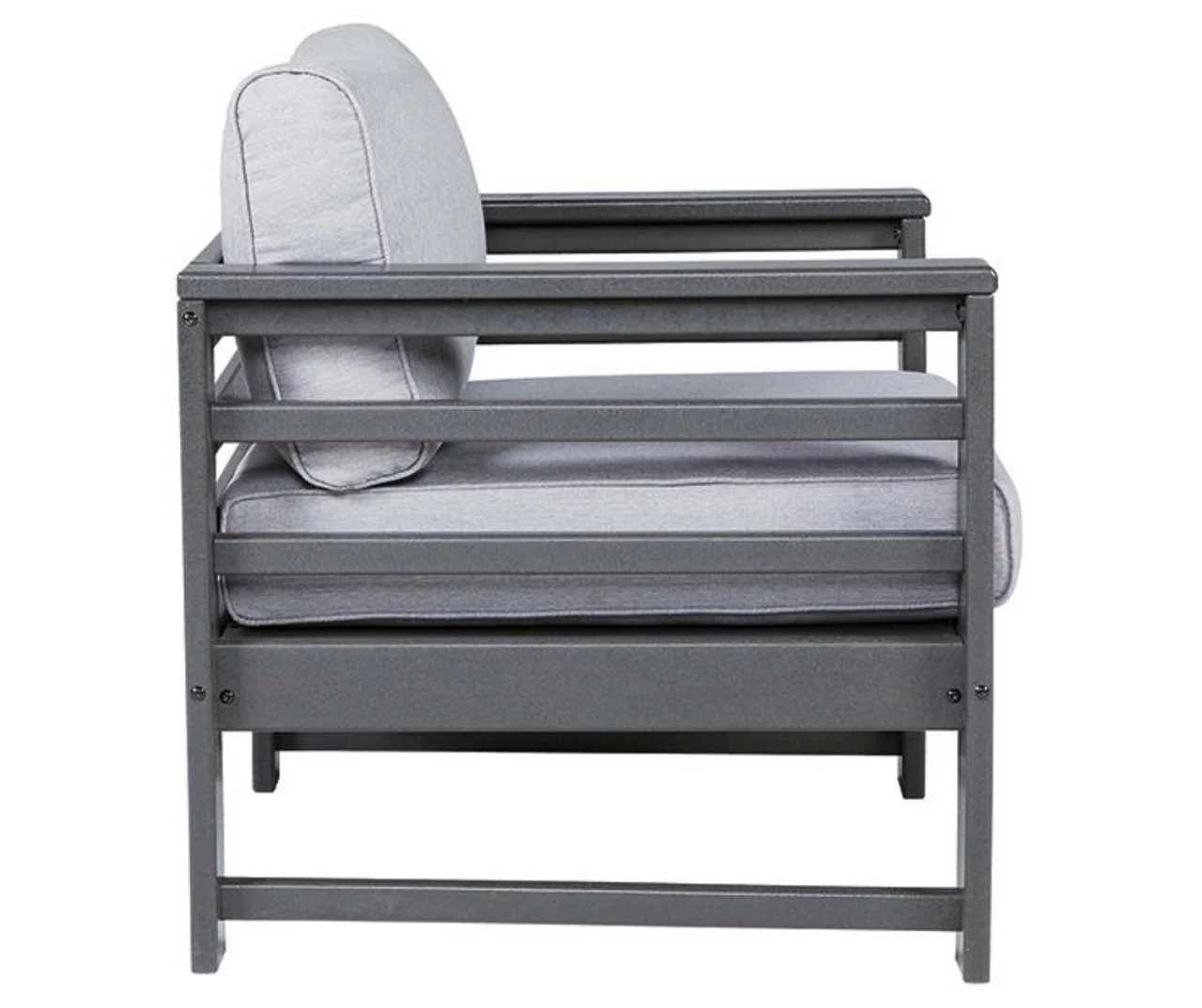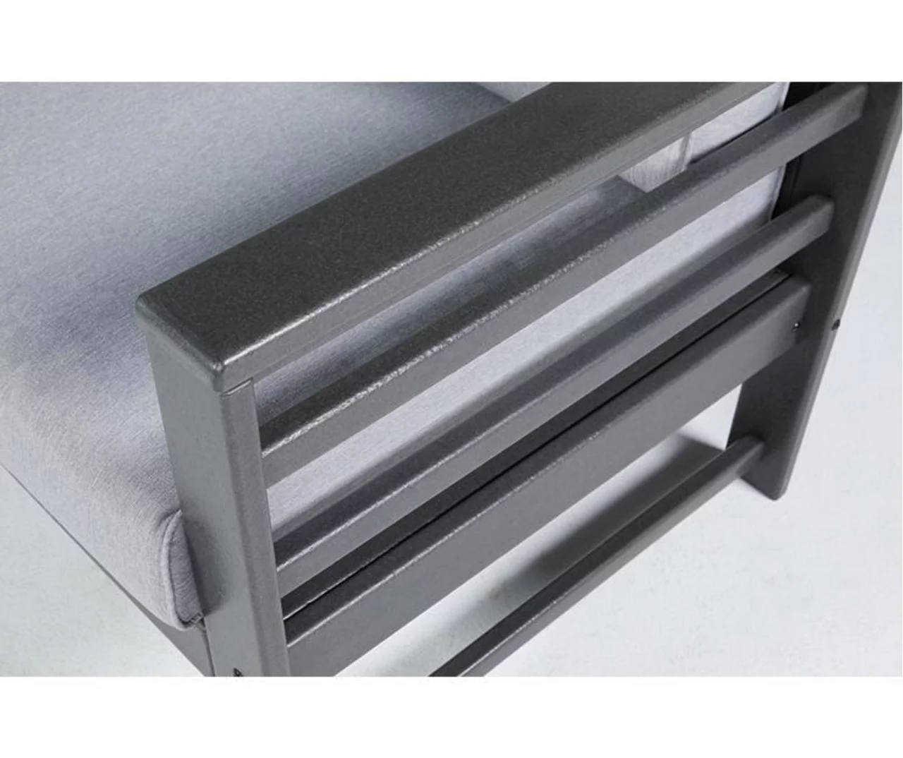 Indulgently comfortable furniture shouldn’t be limited to inside spaces. Create your own outdoor oasis with these cushioned lounge chairs. A study in form and function, each chair features a trend-right charcoal gray frame that is crafted from Mega Tuff HDPE material for durability and weather resistance. Cushions wrapped in high-performing Nuvella fabric are comfortable and carefree.