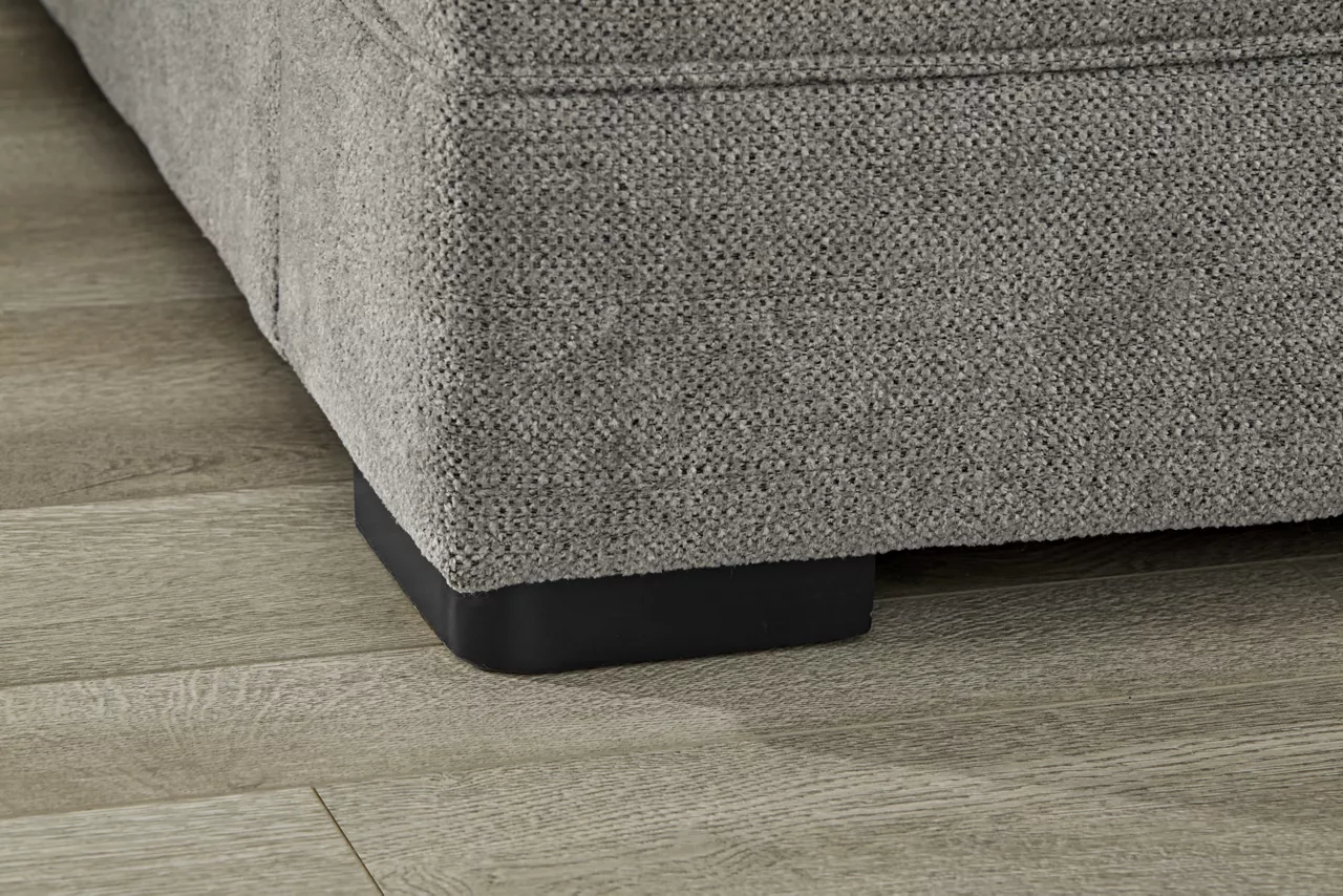 - Upholstered in soft, yet durable neutral gray chenille fabric
