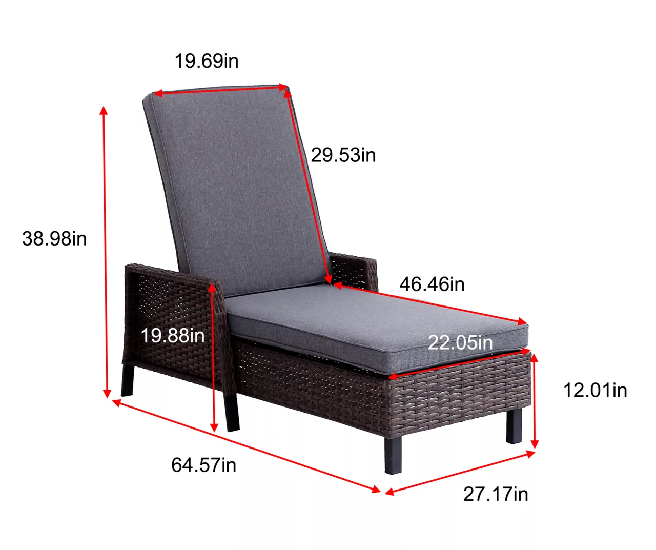 - Outdoor chaise lounger with seat and back cushions