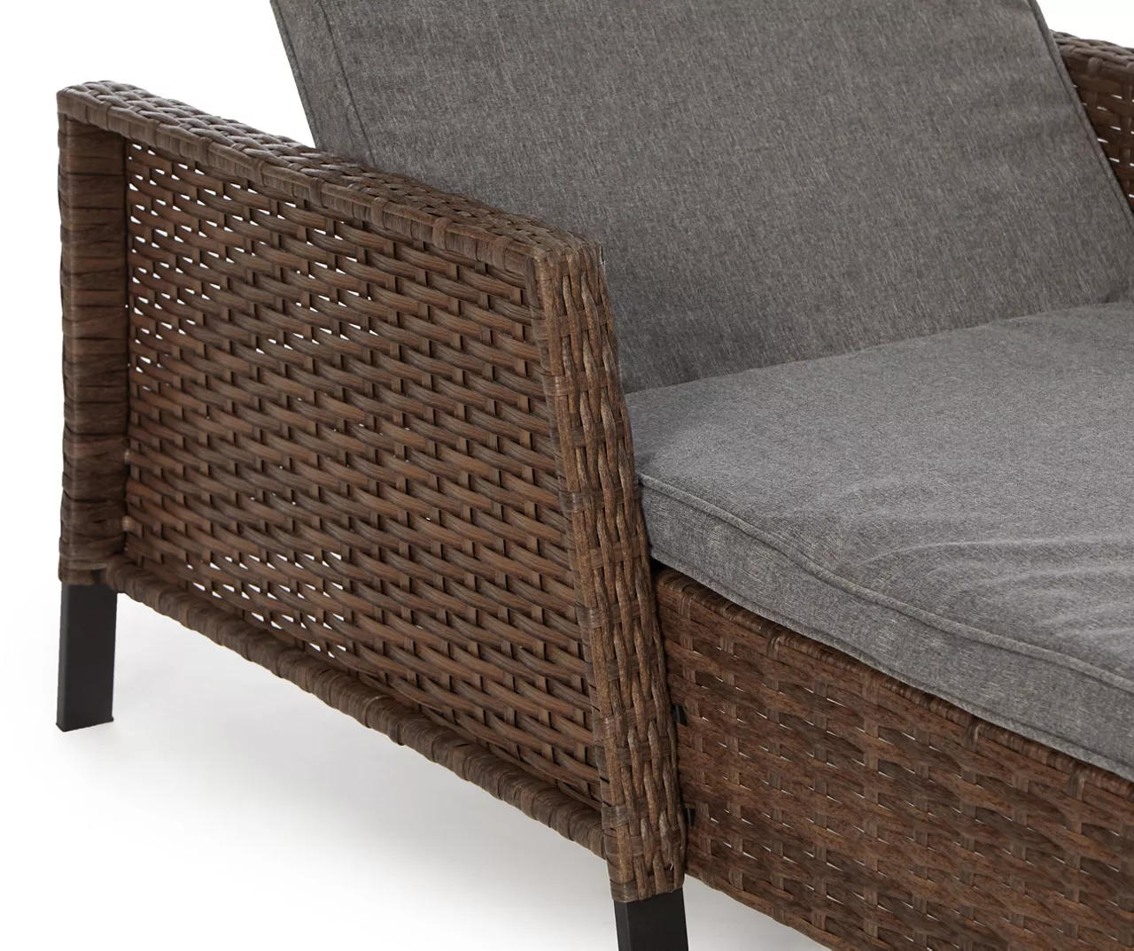 Lounge in the sunshine stretched out on the Yorktown chaise from Broyhill. This stylish lounger features a powder-coated steel frame handwoven in half round all-weather wicker. Comfortable, oversize deep seating cushions made from fade-resistant Olefin fabric offers a relaxing spot to read a book or take a snooze in your outdoor oasis.