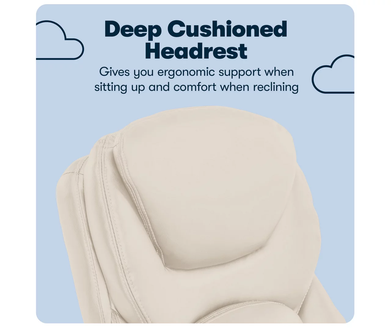 Help promote strength and flexibility in your back while you work with the Serta Back in Motion Executive Office Chair. This ergonomic office chair helps users become more productive and efficient by maximizing lower back support and comfort while seated. Its unique Back in Motion Active Seat Technology swivels the lumbar forward, providing the same effects as a pelvic tilt exercise by promoting spinal movement and flexibility in your core. Push-button adjustable armrests and pneumatic height adjustment allow the leather office chair to be quickly and easily customized to find the right fit for you. The multi-layered cushions are soft yet supportive, so you’ll feel refreshed even after a long day.