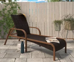 Cosco’s Villa Park wicker chaise lounge offers a new material developed for long-term use and minimal maintenance. Its SmartWick open-cell reticulated dry foam is an emerging, high-performance polyurethane material technology with antimicrobial properties. A thick pad adheres below the wicker seat so that you will experience the long-lasting comfort and feel of a cushion, but without the hassle – a maintenance-free solution. The structured foam contours to your body’s natural curves, providing the benefits of pressure-relieving comfort and satisfaction of superior design. This chaise lounge features an all-weather dark brown wide resin wicker weave, accented by a weather-resistant steel frame hand-painted with a faux wood finish.