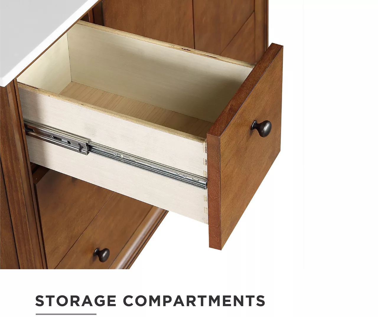 - Offers 3 functional drawers and cabinet for bathroom items and storage