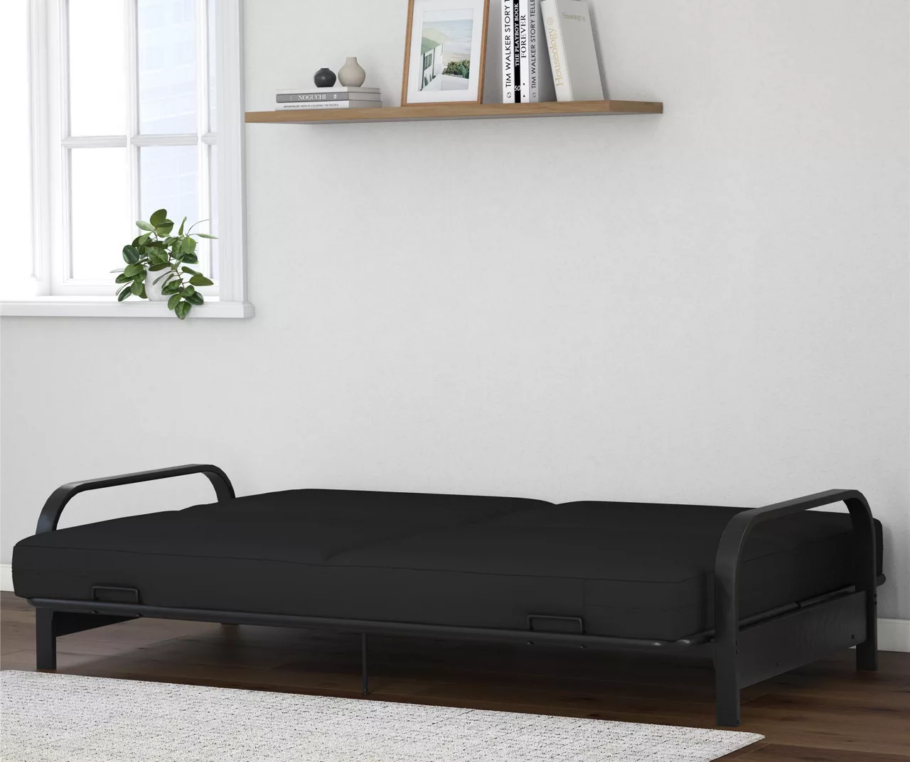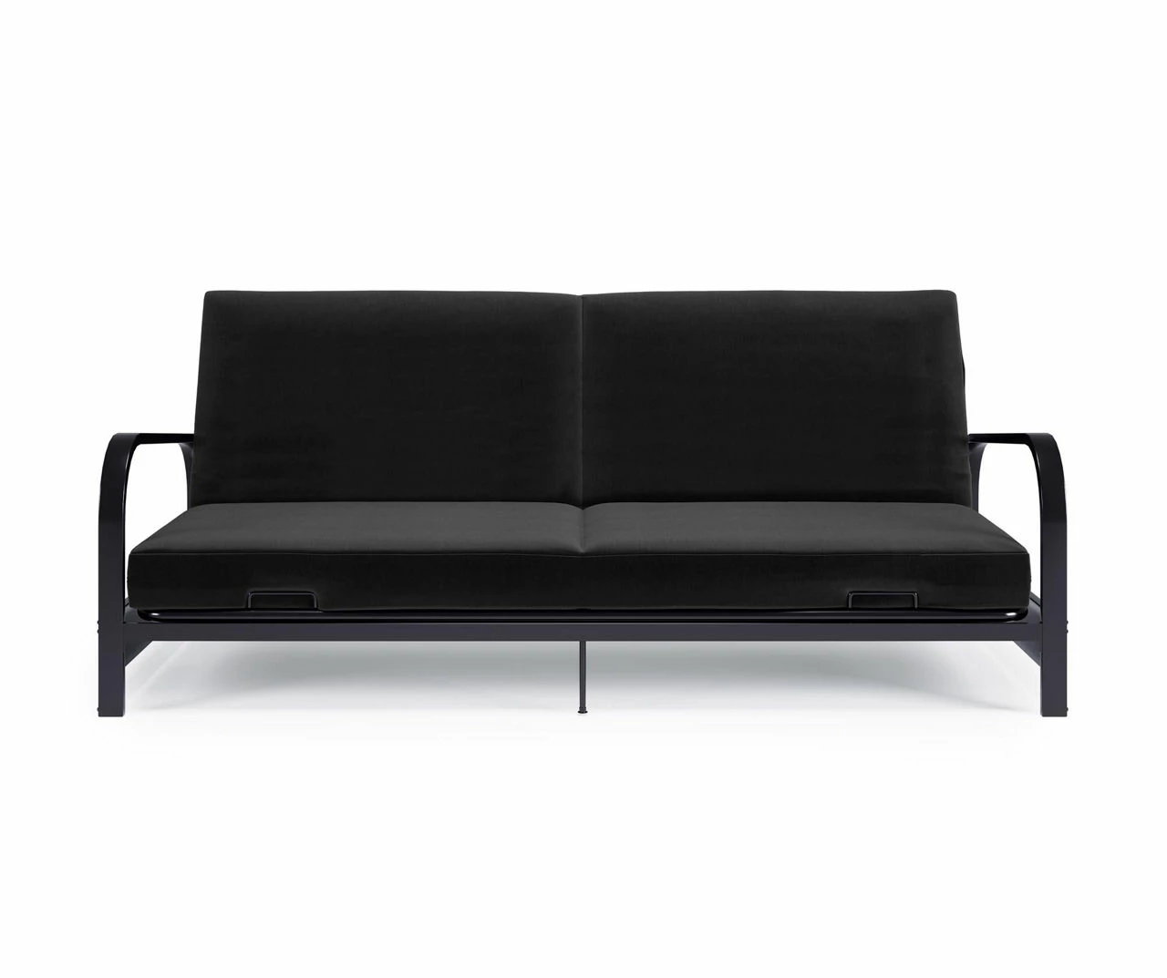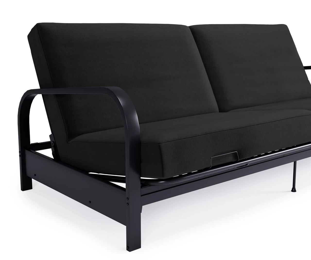 - Sturdy metal frame features 2 extra legs at the back of the seat for additional support and 2 retainer clips that prevent the futon mattress from sliding off
