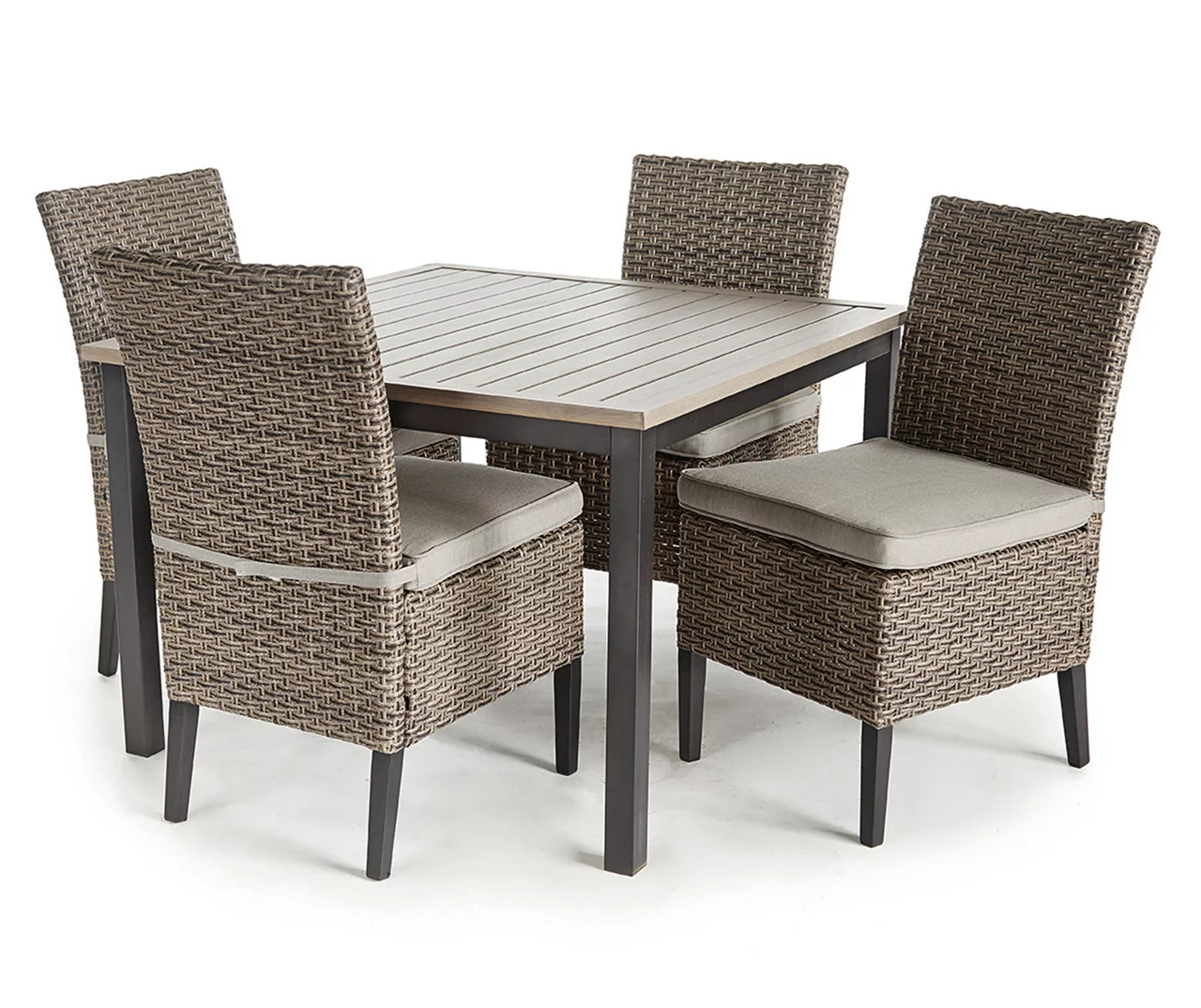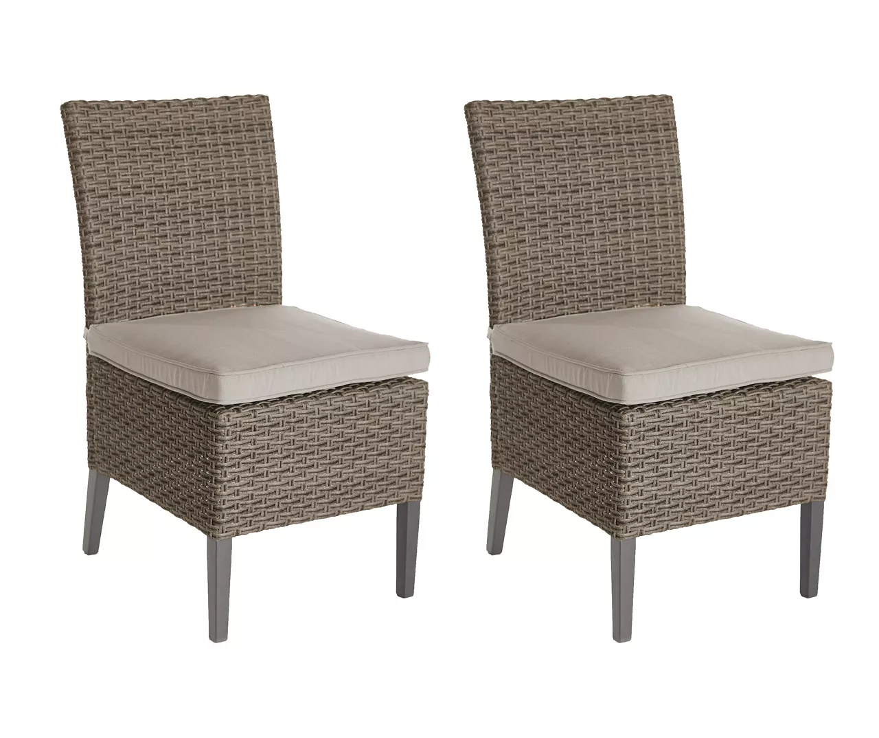 - Includes 2 outdoor dining chairs with seat cushions