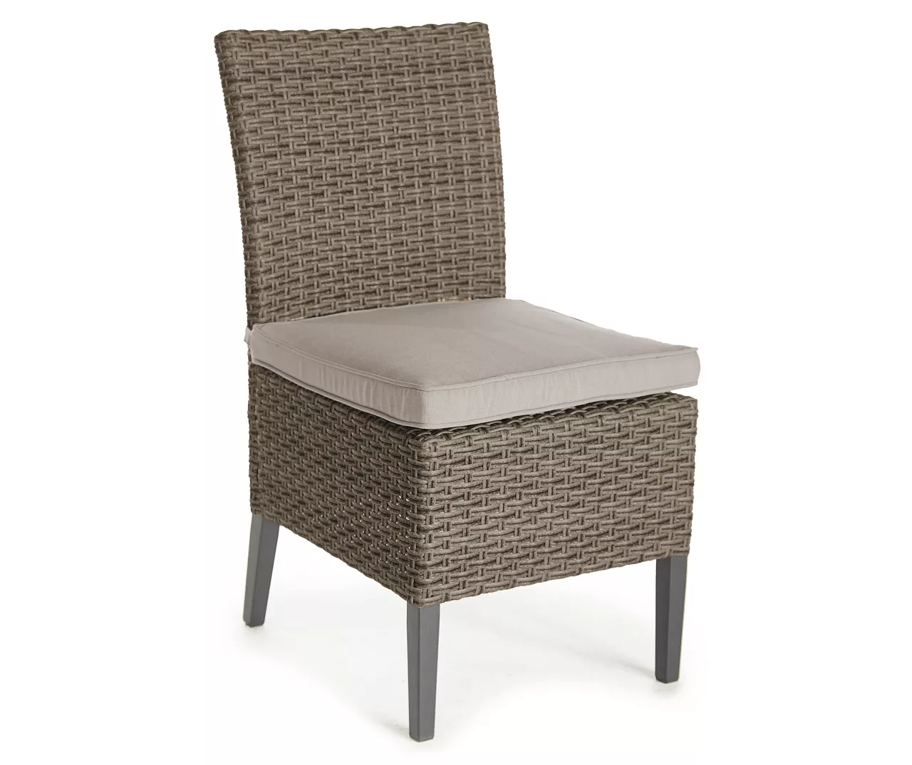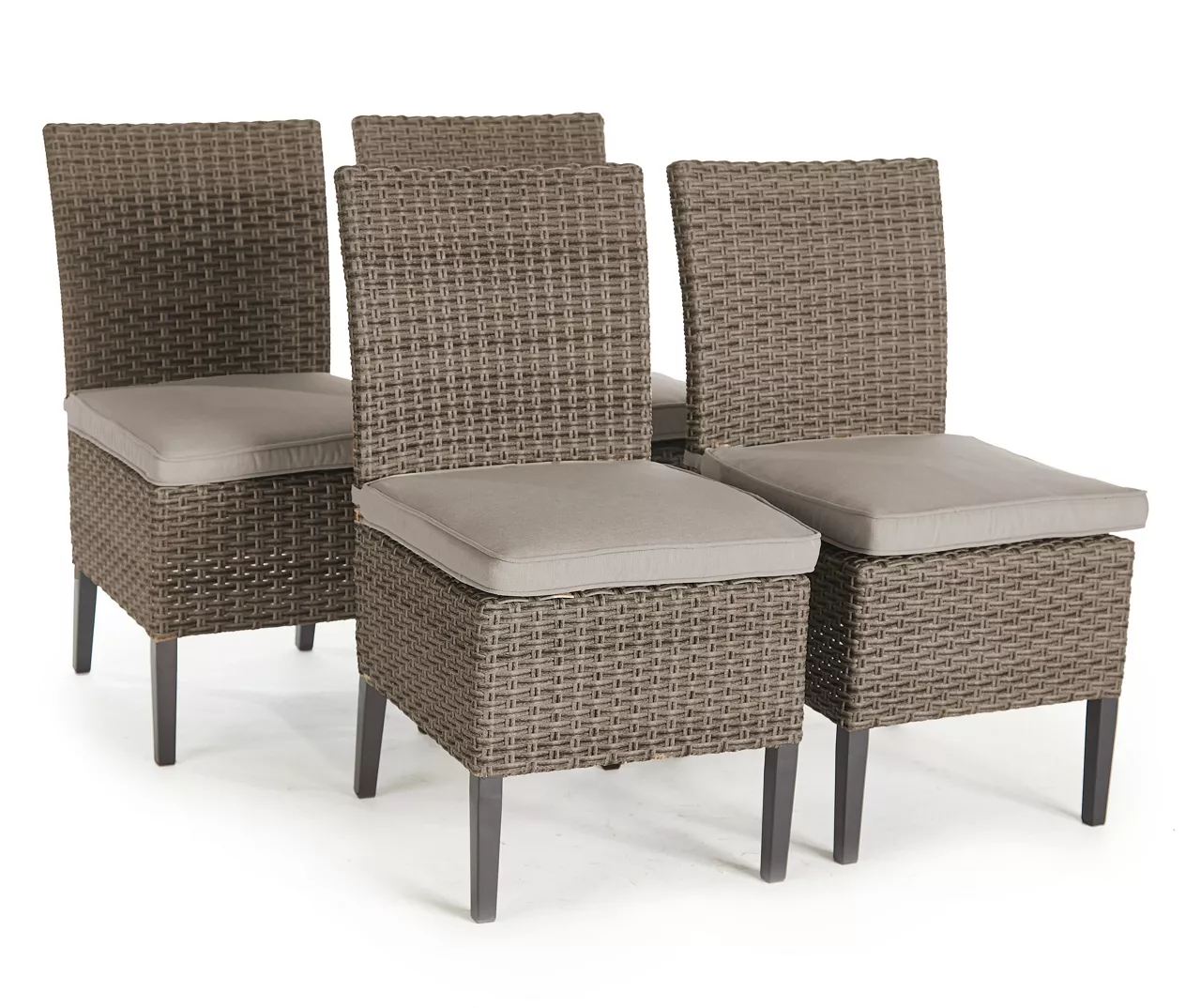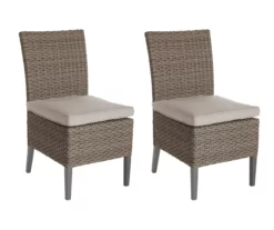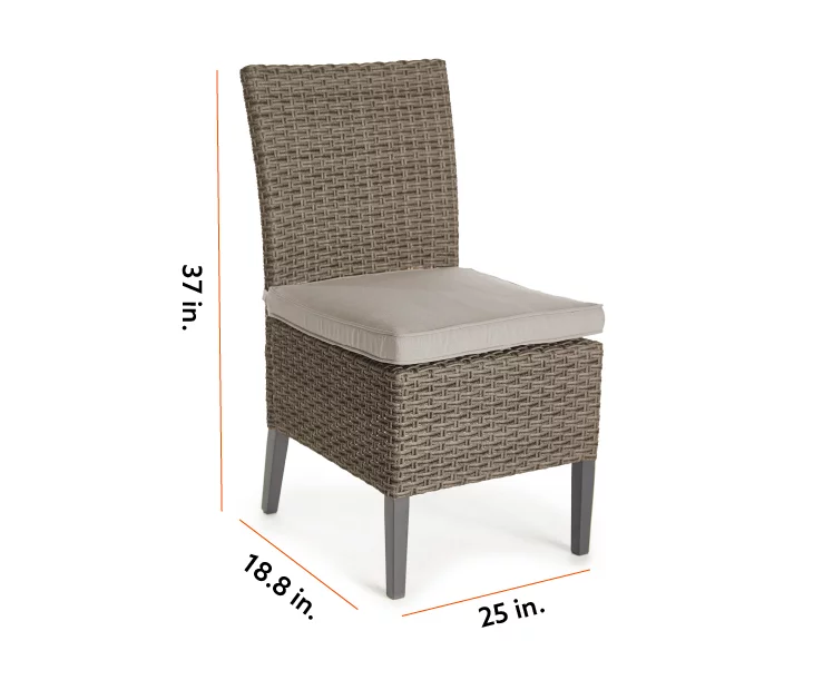 Dine in elegant style outdoors with the Eagle Brooke dining chair set from Broyhill. Each chair features a powder-coated steel frame wrapped in elegant all-weather wicker showcasing rich brown tones. Topped with a plush cushion in neutral tan, these chairs are the perfect addition to an outdoor dining table on the patio or deck.