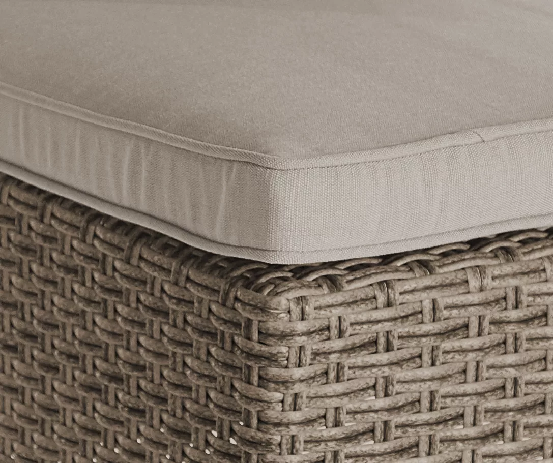 - Fade-resistant olefin fabric cushions in tan