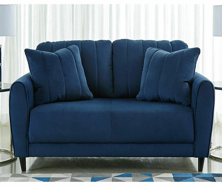 A brilliant take on urban chic styling, the Enderlin loveseat in vibrant blue makes high design highly affordable. Distinctive elements include quilted channel stitching for clean-lined allure and a velvety soft fabric you’ll love living with. Sculptural track arms up the wow factor. If you’re looking for big style on more modest scale, you’re sure to appreciate this loveseat’s space-conscious 59″ wide profile.