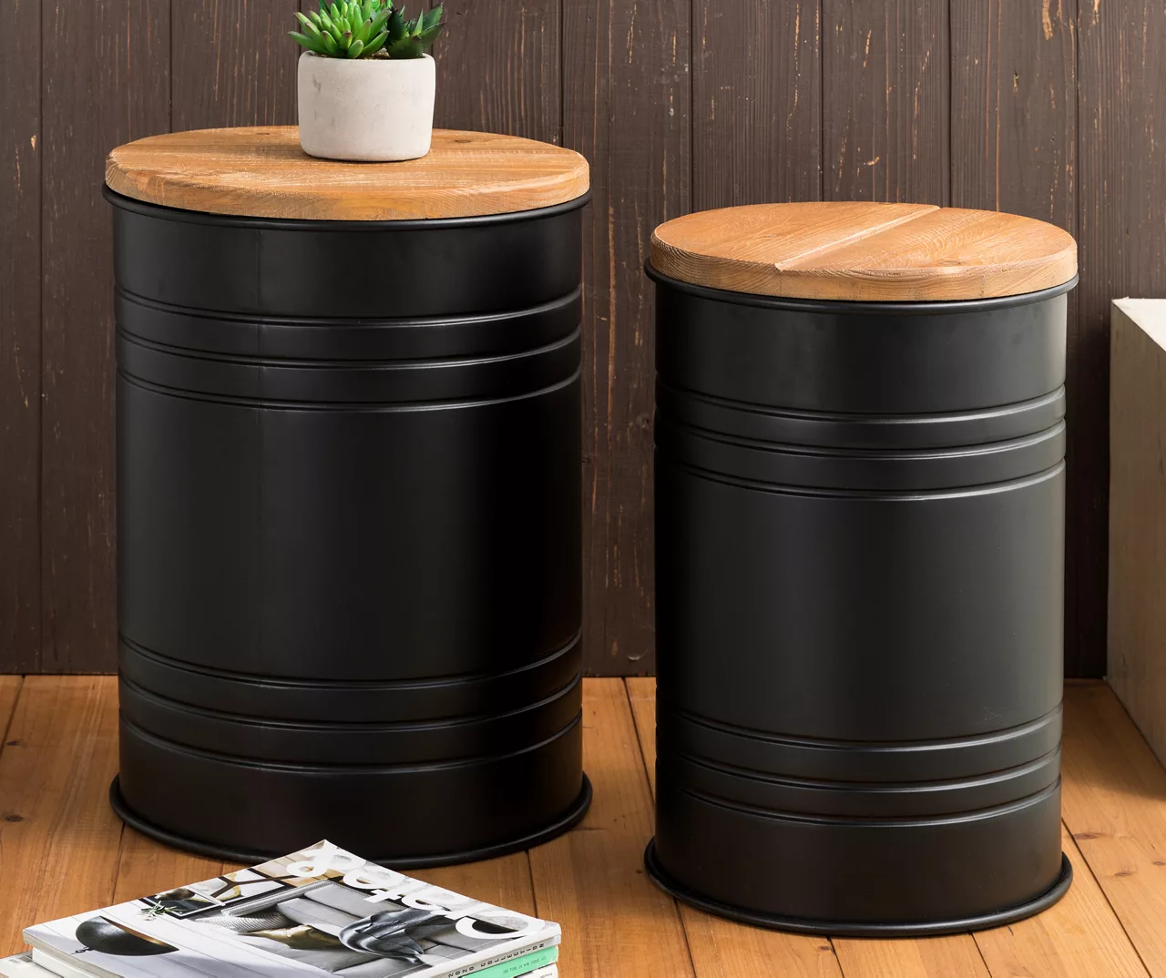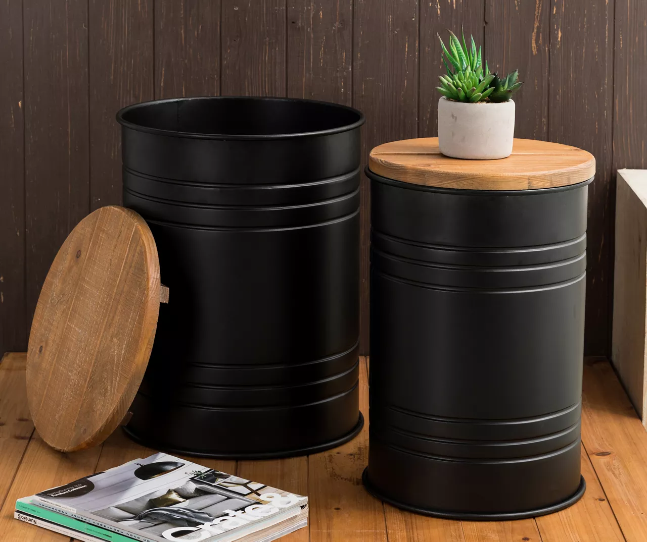 Made from high-density wood and iron, these black barrels double as a side table for display and extra seating for when guests are over. Remove their pine wood tops to reveal a hallow interior for storing blankets, pillows and other home essentials. Place them in the living room, den or bedroom for a touch of rustic, country charm. Water resistant design means they’re ideal for outdoor use too.