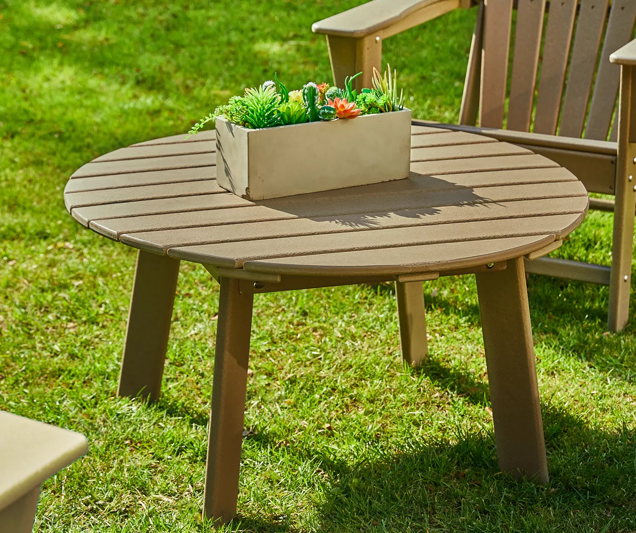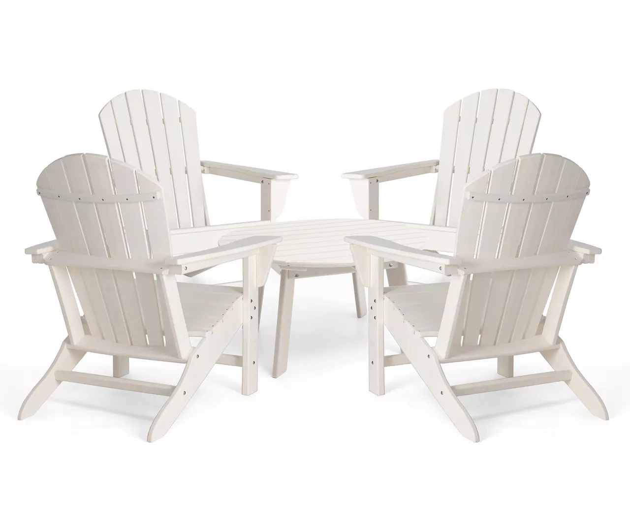 - Includes 4 outdoor Adirondack chairs and coffee table