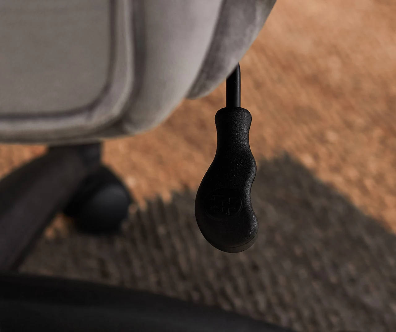 - Plush and padded desk chair in gray fabric