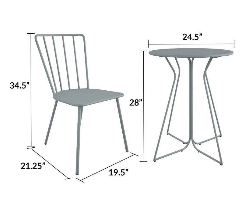 Heidi Light Gray 3-Piece Bistro Patio Furniture Set