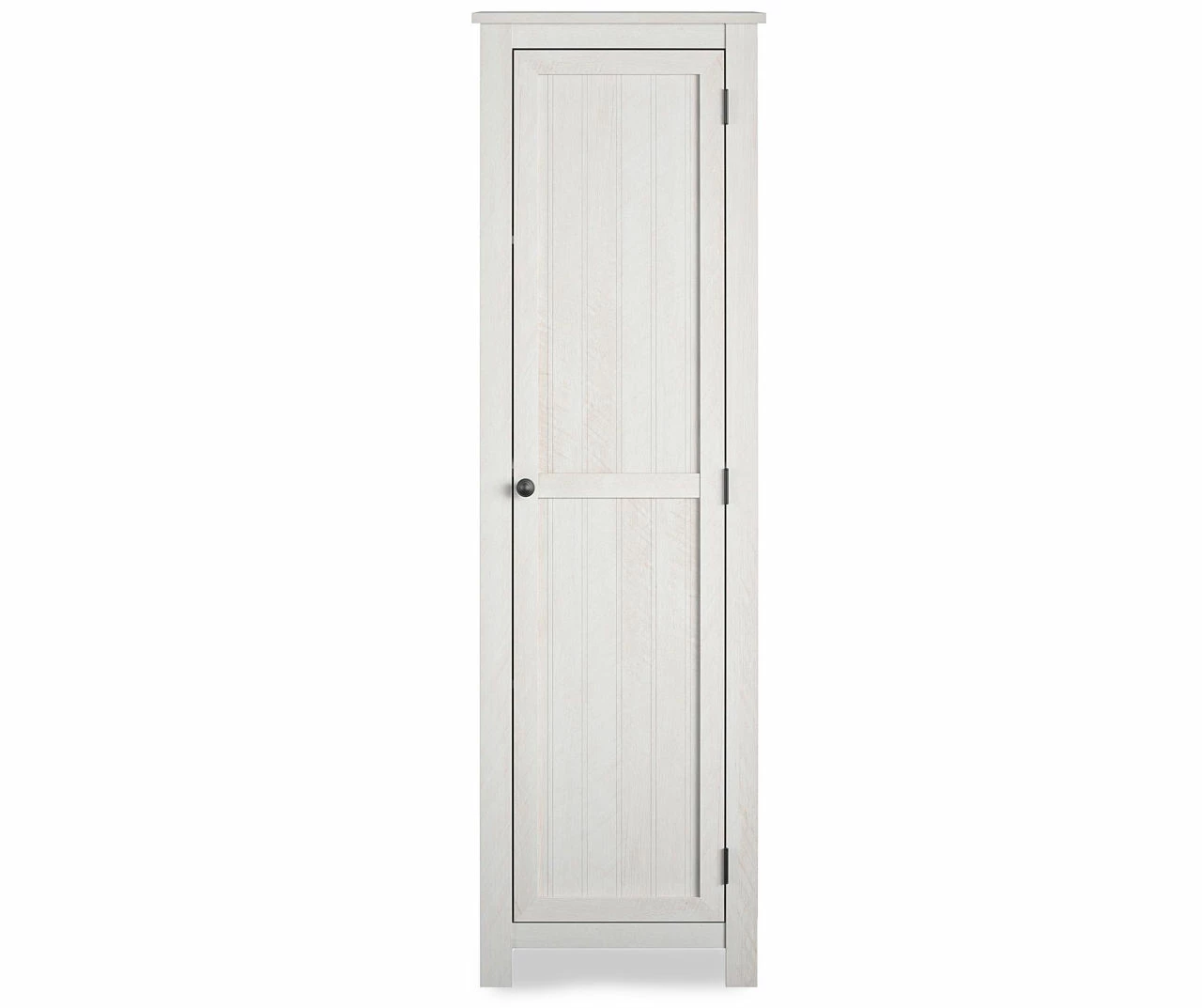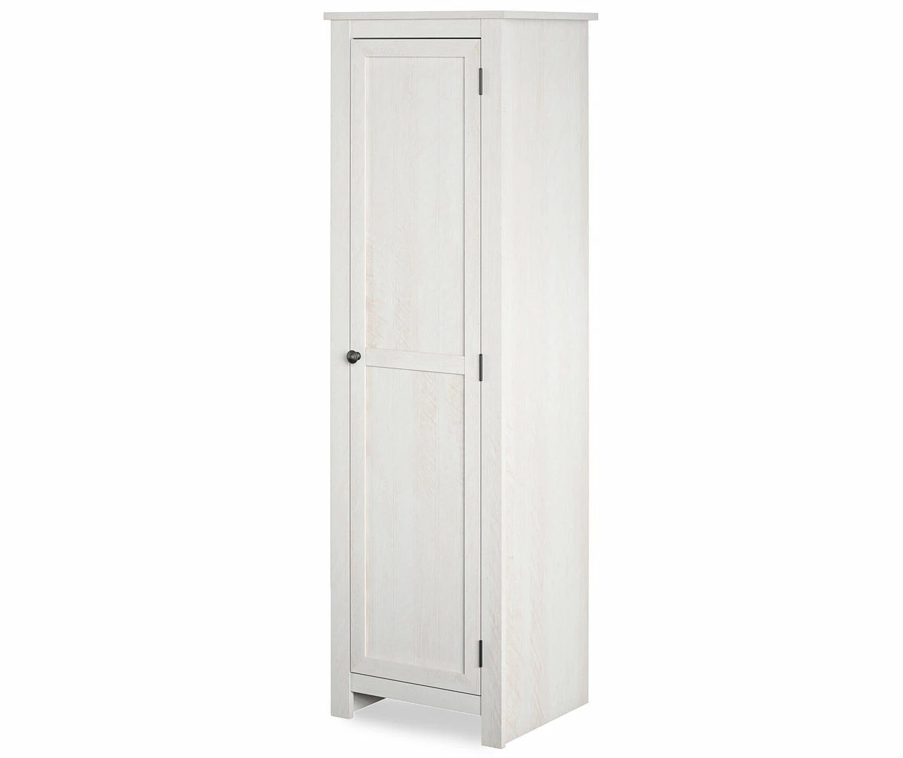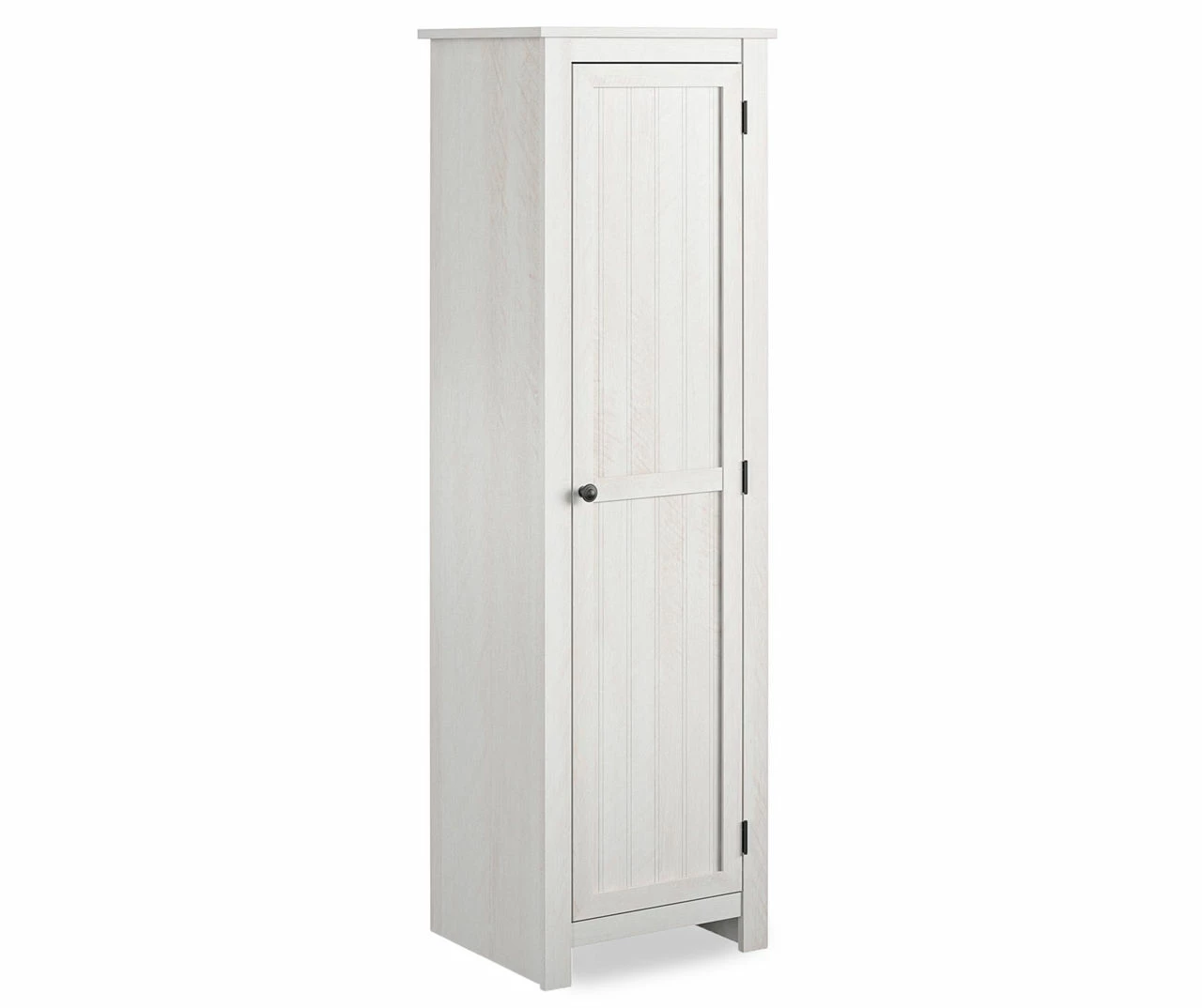 Store and organized anything from canned goods to small appliances in modern farmhouse design using the Ameriwood Lincoln single door kitchen pantry. This beautiful storage solution features an off-white woodgrain finish paired with a beaded door insert to bring a rustic touch to your kitchen. Opening the door reveals four interior shelves with adjustable options for all your culinary and houseware needs. This versatile piece can also be used in any room of your home to add valuable storage where you need it most.