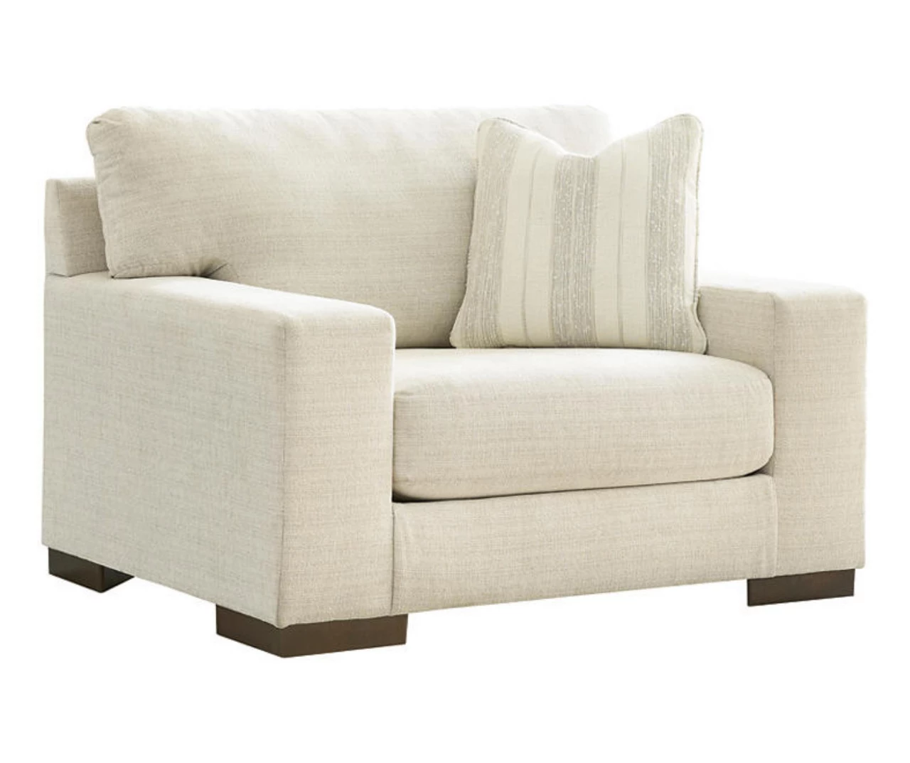 Classic comfort gets a mod twist with this oversized chair. Its minimalistic approach and structured silhouette bring a clean-lined design element to your living room. Sink into the positively plush cushions while relaxing solo, or curl up with a glass of wine while hosting guests. And with light neutral upholstery that suits both casual and contemporary spaces, this chair offers endless style possibilities.