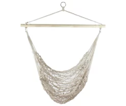Relax in style with this portable hammock. A comfy addition to your outdoor space, this hammock has an ivory netted pattern and a wooden bar to hang. This fun hammock is ease to transport and hangs wherever you venture!