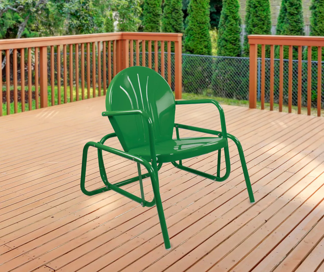Bring a touch of the 1950s to your yard or porch with this vintage-style metal glider chair. With its weather-resistant powder-coated finish you will have years to enjoy this classic piece. Perfect for enjoying a glass of wine on the patio with family and friends or a good book by yourself.