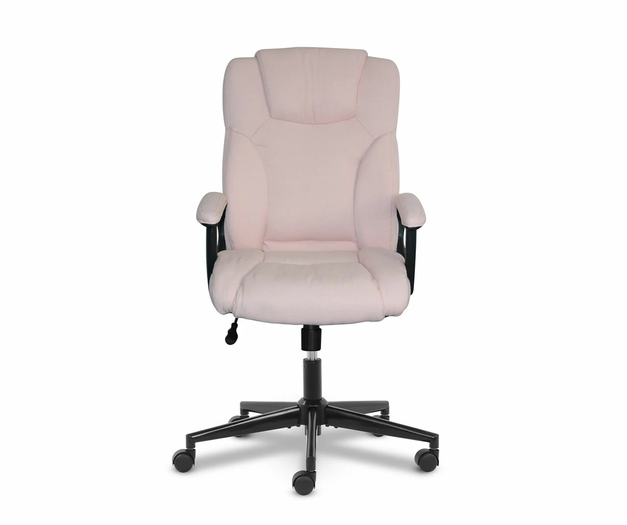 - Pink microfiber office chair with padded cushions