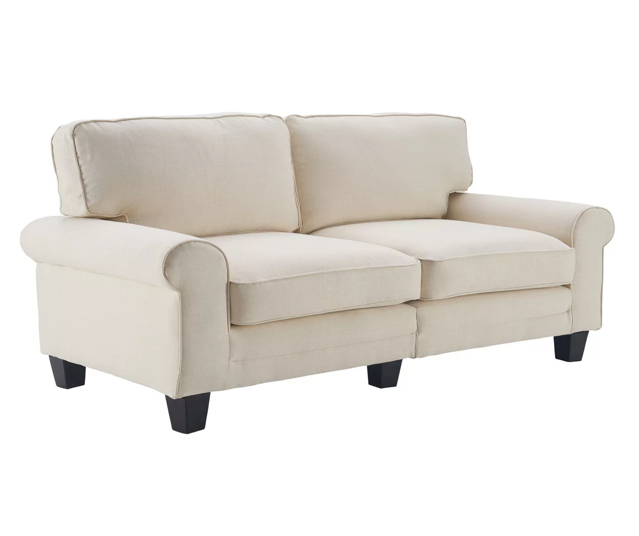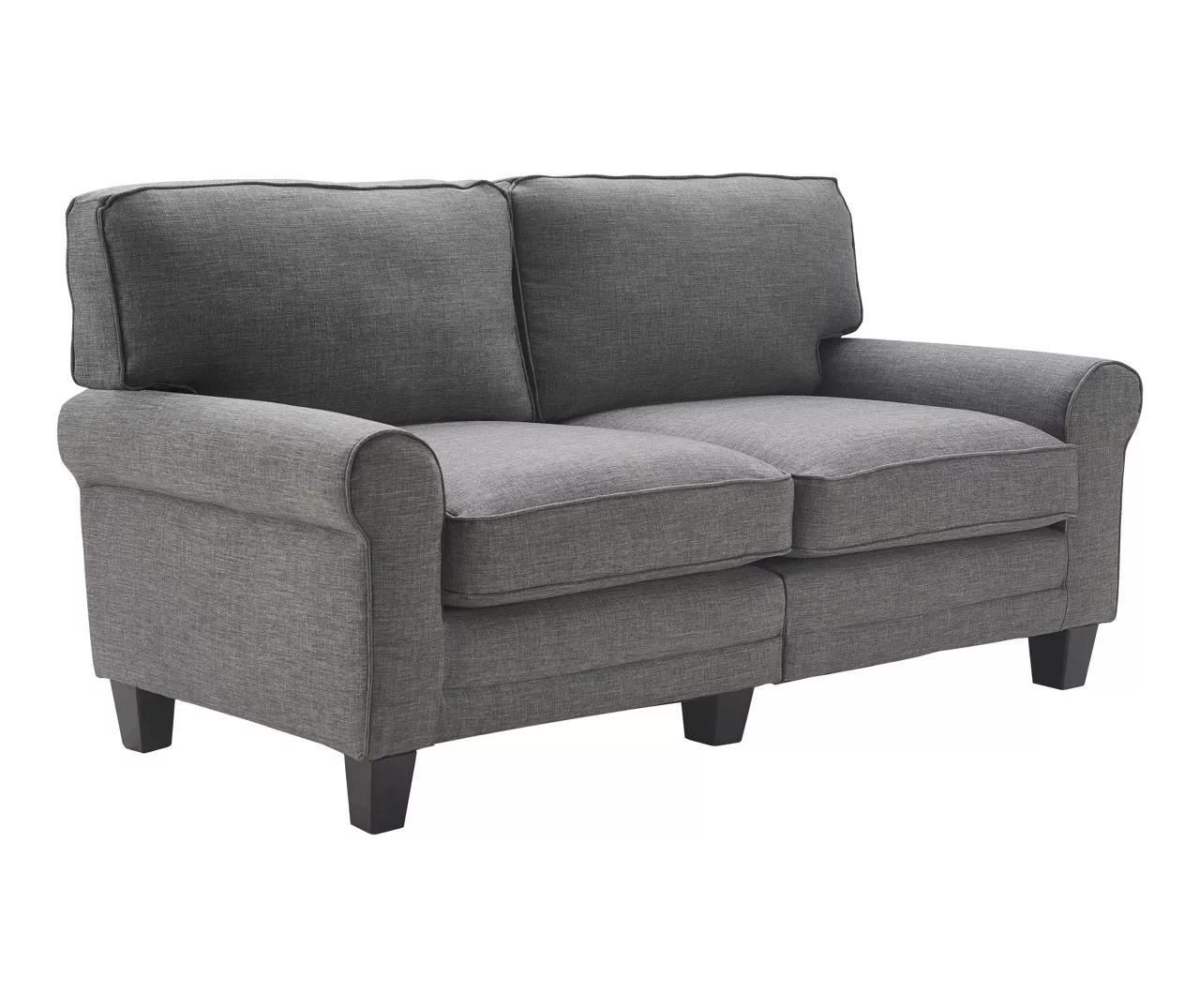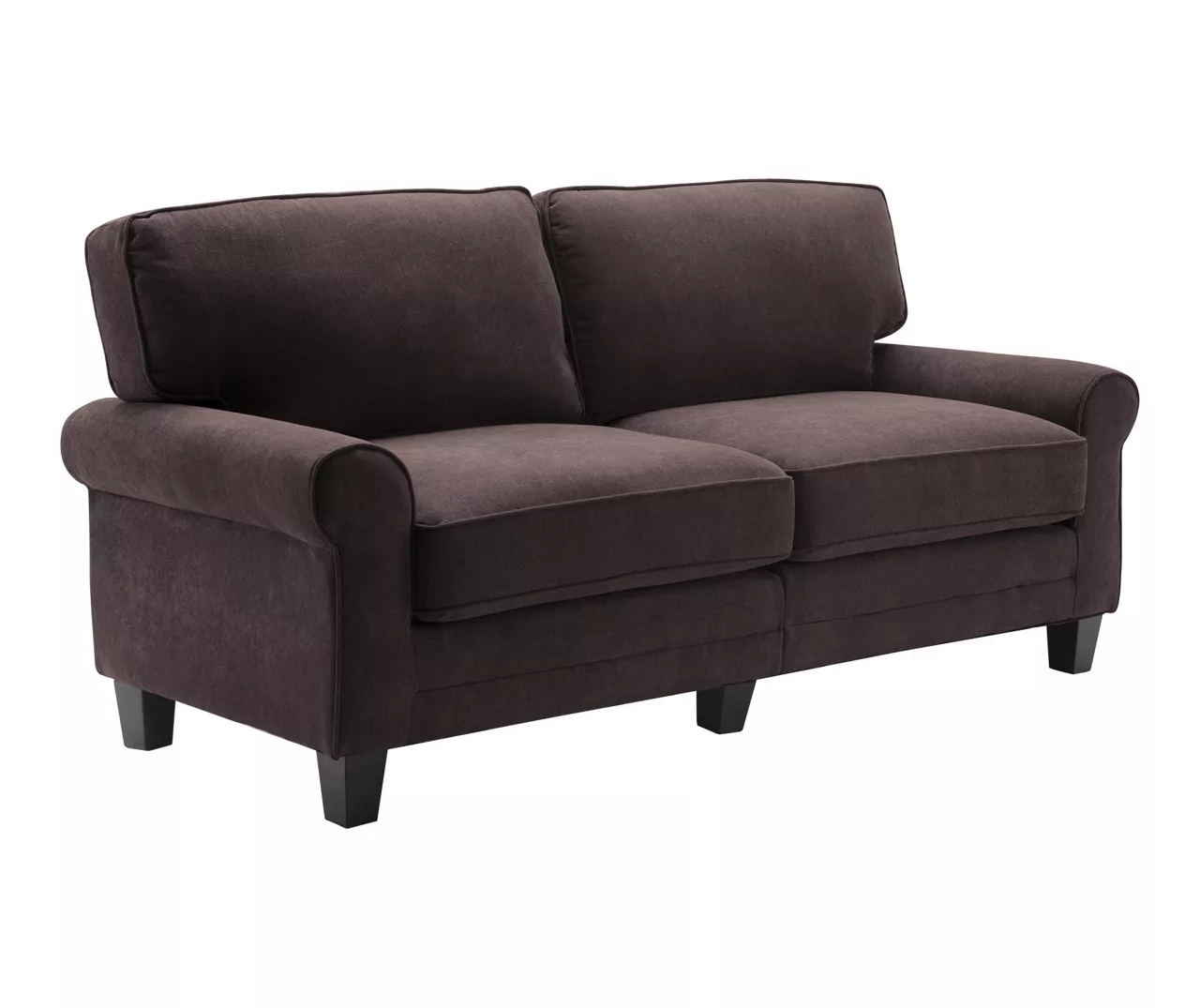 Enjoy functional style and plush, comfortable seating with the Serta Copenhagen sofa. A great solution for smaller spaces, its compact size and easy tool-free assembly makes it an affordable and stylish seating solution for your apartment, condo or office. Soft rounded arms and pillowy back cushions bring traditional style to your living room, den or game room. Quality hardwood materials deliver strength and stability you can count on, while individually wrapped coils surrounded by high-density foam and poly-fibers provide comfortable seating you can sit back into.
