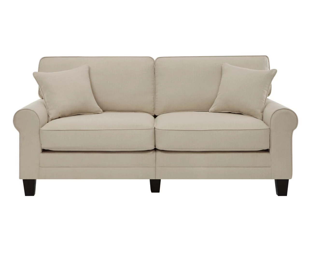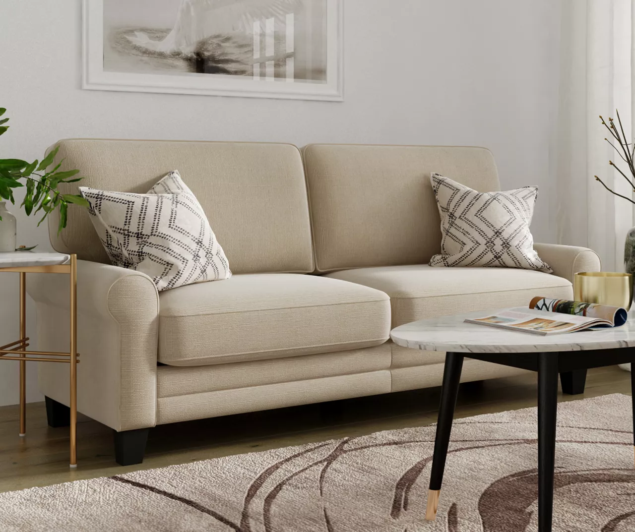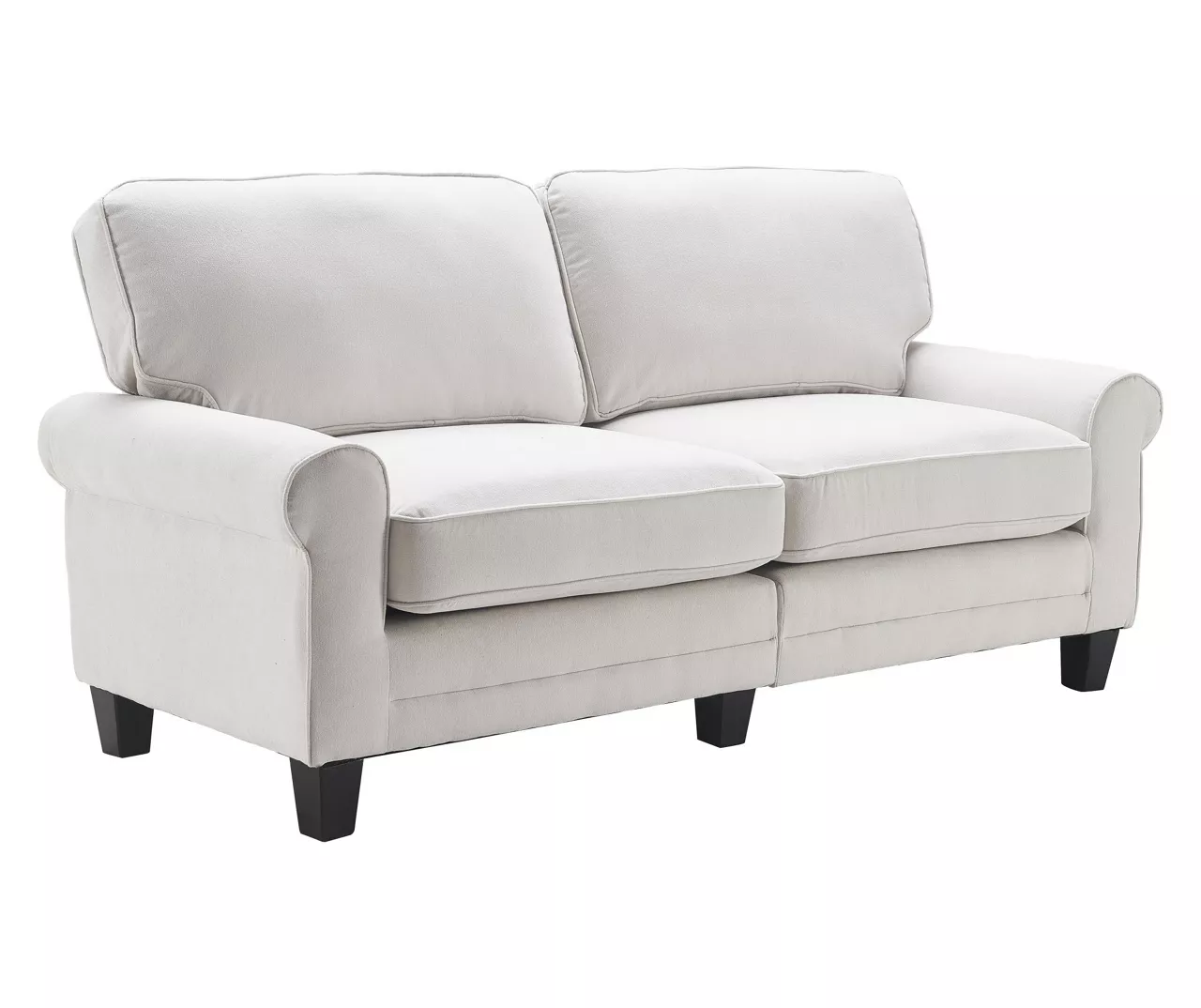 Enjoy functional style and plush, comfortable seating with the Serta Copenhagen sofa. A great solution for smaller spaces, its compact size and easy tool-free assembly makes it an affordable and stylish seating solution for your apartment, condo or office. Soft rounded arms and pillowy back cushions bring traditional style to your living room, den or game room. Quality hardwood materials deliver strength and stability you can count on, while individually wrapped coils surrounded by high-density foam and poly-fibers provide comfortable seating you can sit back into.