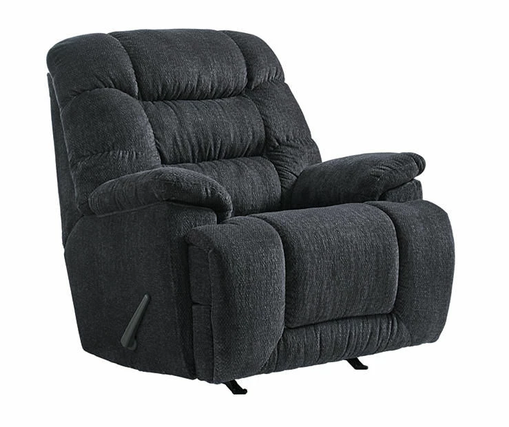 Sit back, relax and kick up your feet. Immerse yourself in total comfort as the Bridgtrail rocker recliner embraces you with the cool look of leather and the warm, cozy feel of fabric. Plush, pillowy cushions, an oversize headrest pillow and wide pillowtop armrests feature heavyweight stitching in a stunning shade of charcoal gray. The warm, welcoming look fits easily with other colors in the room and is right at home with a variety of design styles. A comfortable big and tall high-back profile allows an abundance of softness that is over the top.