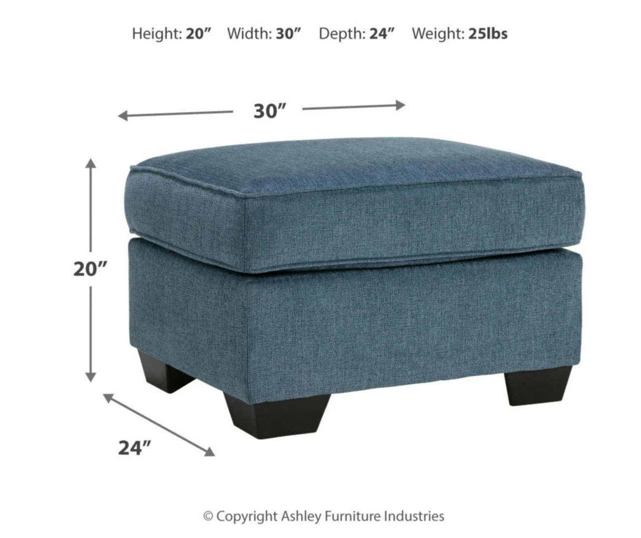 Need a simple style refresh? Liven up your living room essentials with this ottoman. A chunky silhouette holds inviting cushioning perfect for propping up feet or using as a decorative tray. Crosshatched upholstery gives the otherwise casual design a delightful visual texture that’s ideal for settings from classic to contemporary.