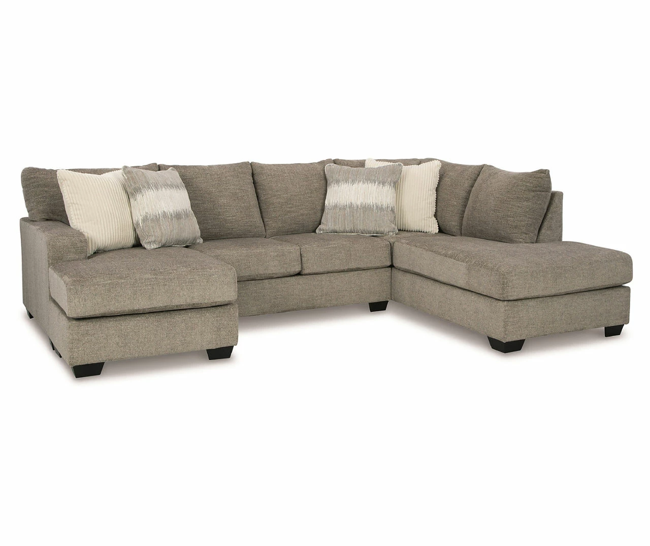 Easy on the eyes, this sectional expands your seating options with ease. Its generous scale cradles you in comfort, while luxurious upholstery pampers you from head to toe. A collection of coordinating accent pillows adds to the indulgence.
