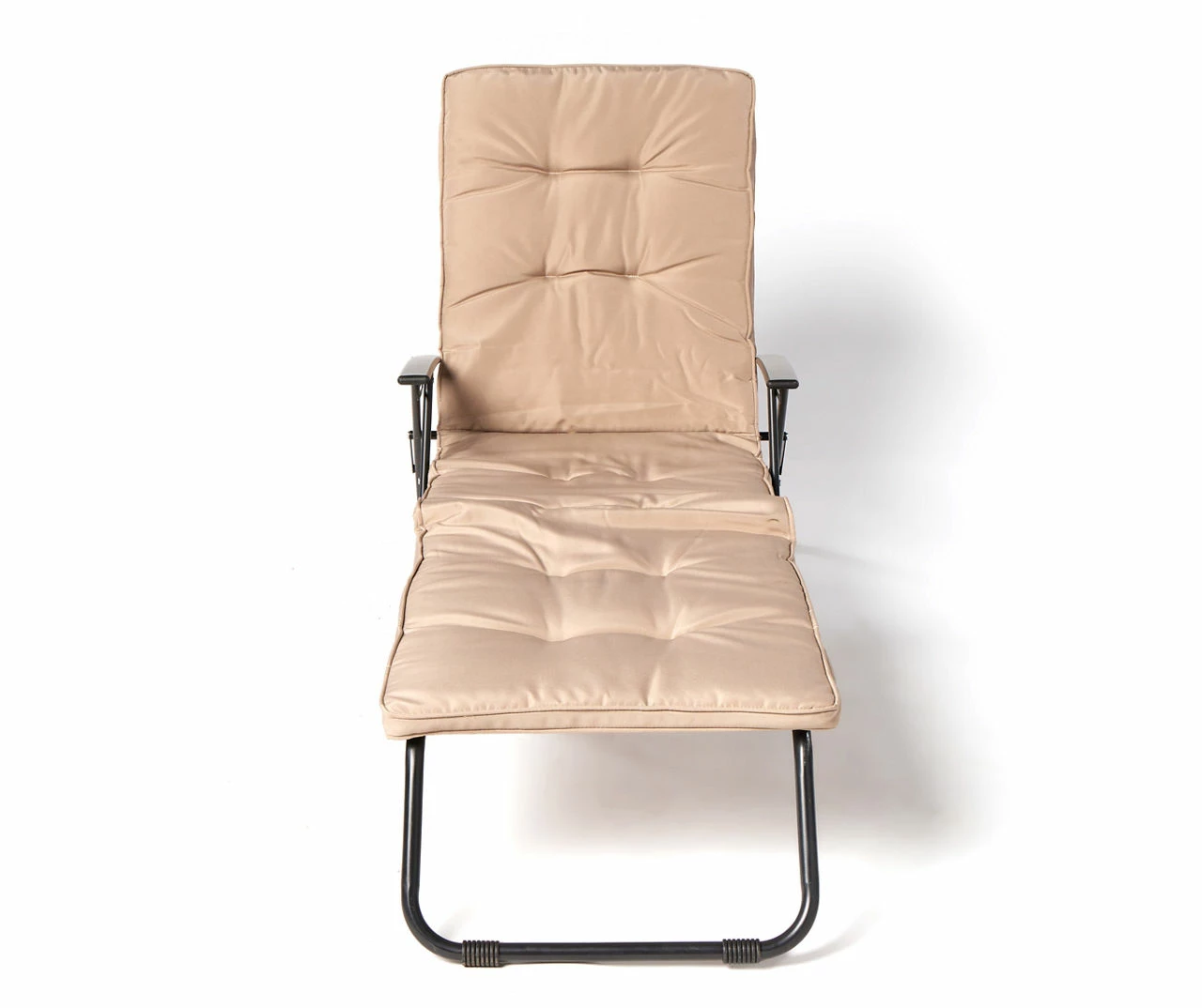 Place this lounger on your patio, in your yard or next to the pool for an awesome relaxation experience. With a comfortable cushion in a neutral tan hue, you’ll want to spend hours on it soaking up some sun, reading and hanging out. It features a steel frame with a powder-coated finish for protection. Adjustable positioning for laying out or sitting upright.