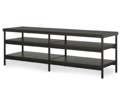 Organize all your media with the Ameriwood Topaz TV stand. Its modern design features four spacious shelves to fit all of your components, from your DVD player to your gaming system, allowing proper air circulation to prevent your equipment from overheating and makes plugging in devices simple. Featuring powder-coated steel framework with dark brown woodgrain shelving, this appealing stand is perfect for your living room, family room or media room.