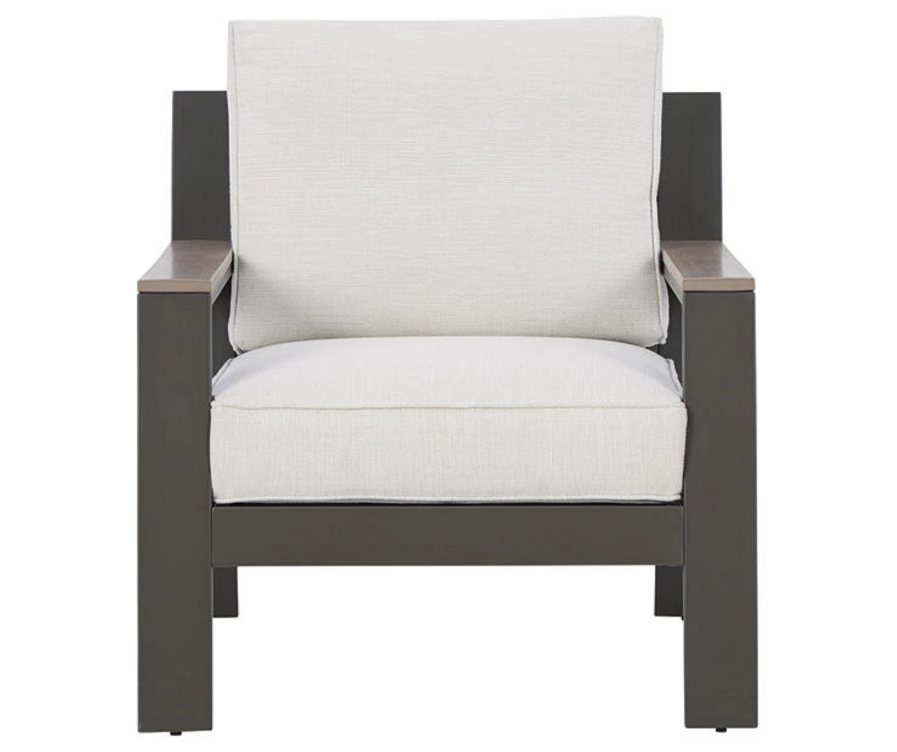 Natural neutrals are all the rage these days. Embrace the style trend with this outdoor lounge chair. Crafted with a mix of aluminum and an HDPE material for exceptional durability and weather resistance, this comfortably cushioned chair takes outdoor living to a whole new level. Rest assured, the thick seat and back cushions are wrapped in exclusive Nuvella high-performance fabric that’s fade-resistant, stain-resistant and a breeze to clean.
