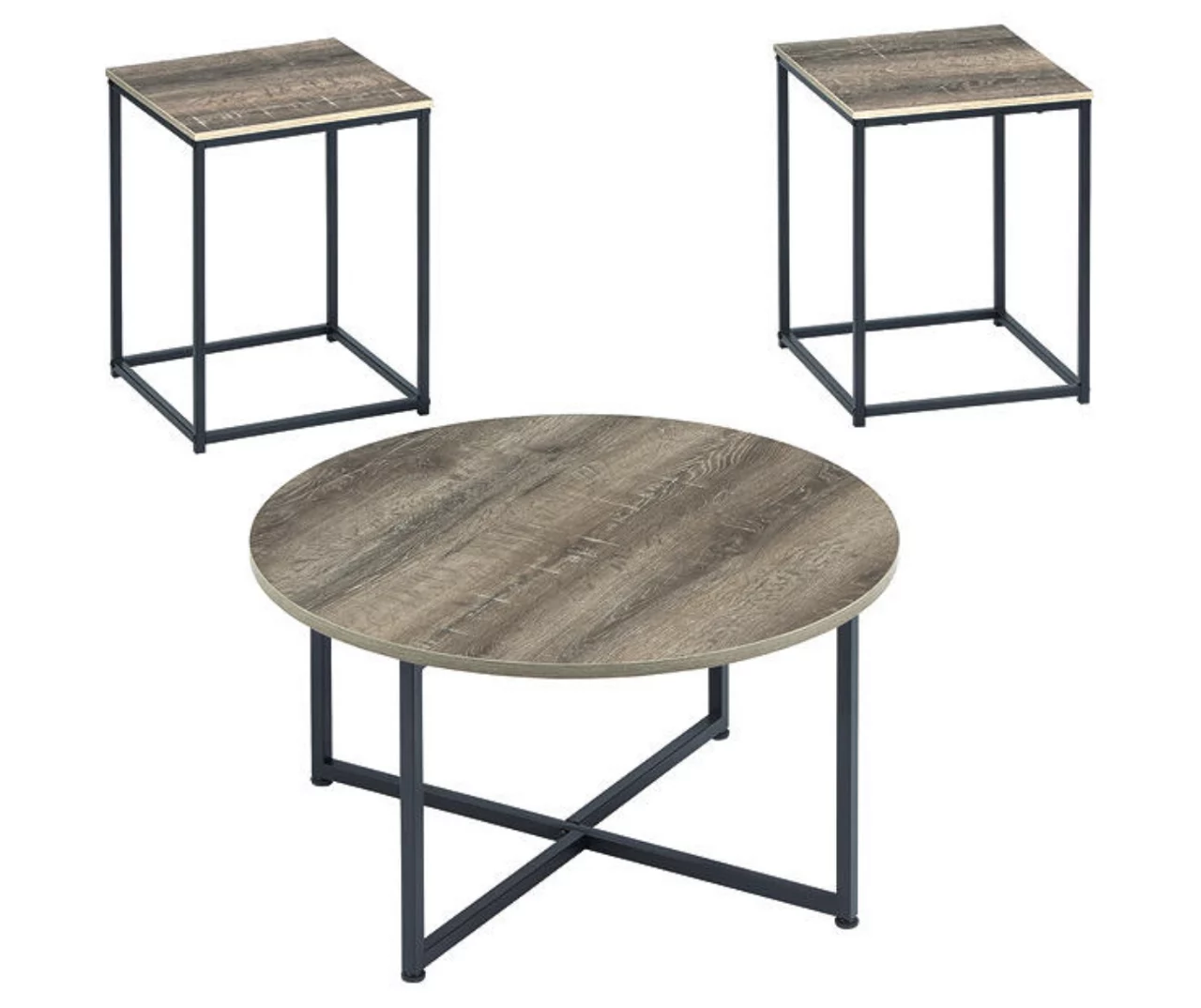 Casual and industrial can take you so many places with this accent table set. From driftwood beachy to uptown urban, this set provides the contemporary design you want with its beautiful woodgrain look and matte black metal legs.